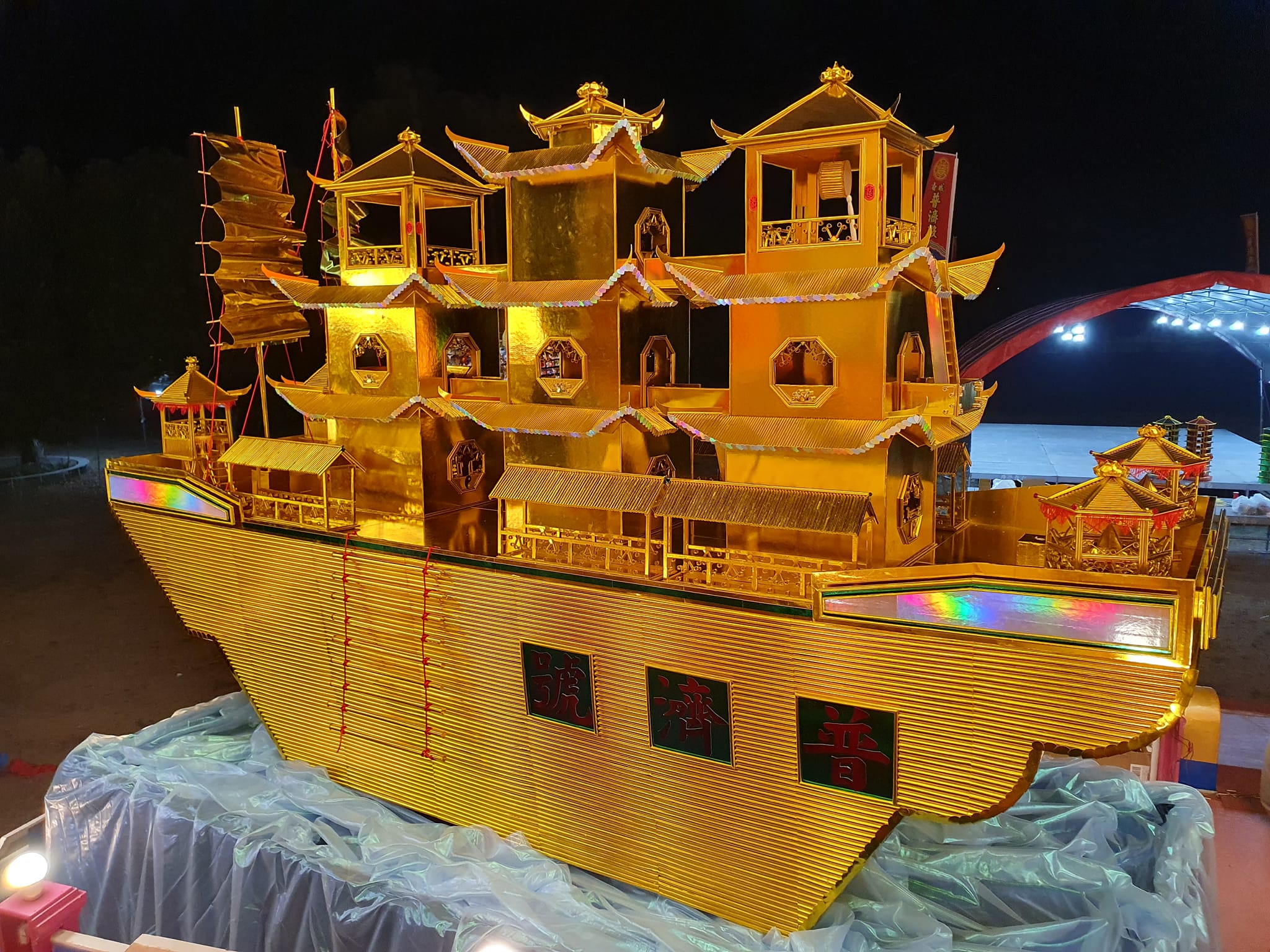 今年普濟殿王船醮,更由石亦珍領導的紙藝師們變化出許多令人嘆為觀止的紙藝作品,將信仰化為形體,讓無形的祝福,化作有形的守護,為島嶼祈福、為萬靈祈安。整個醮壇因宗教紙藝和供品的結合而金碧輝煌、蓬畢生輝。
