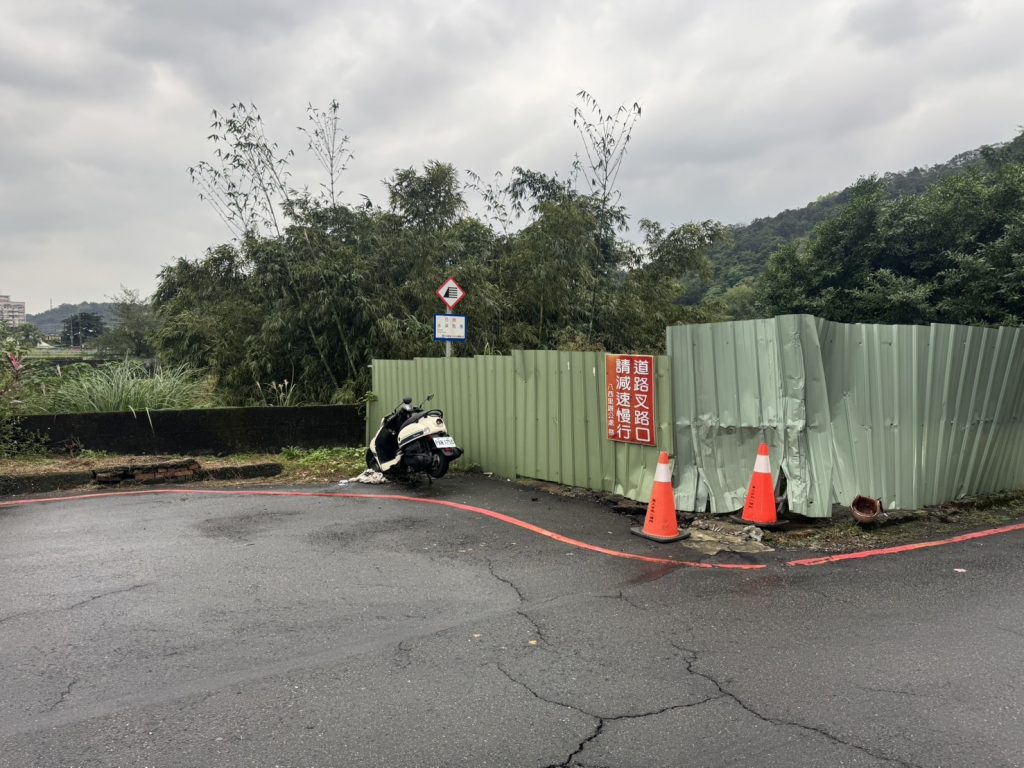 市議員施偉政說,中山區新西街就有很多此類危險路段,上周尚仁街發生二個孩子單親媽,上坡時直接撞上未設燈光警示的工地圍籬當場死亡,撞毀的車輛還停在事故彎道處。