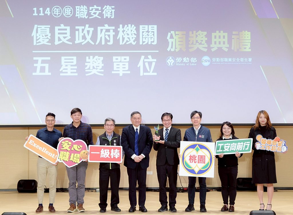 桃園市長張善政以「好通勤、好工作、好就學、好生活」四大施政願景,帶領市府團隊深耕安全文化,打造友善且安心的工作與生活環境,在市府團隊努力下,桃園市政府於勞動部舉辦「一一四年度政府機關推動職業安全衛生績效評核」,榮獲「優等獎」殊榮。展現市府團隊在推動職業安全衛生管理制度與落實勞工及市民安全政策上的卓越表現。