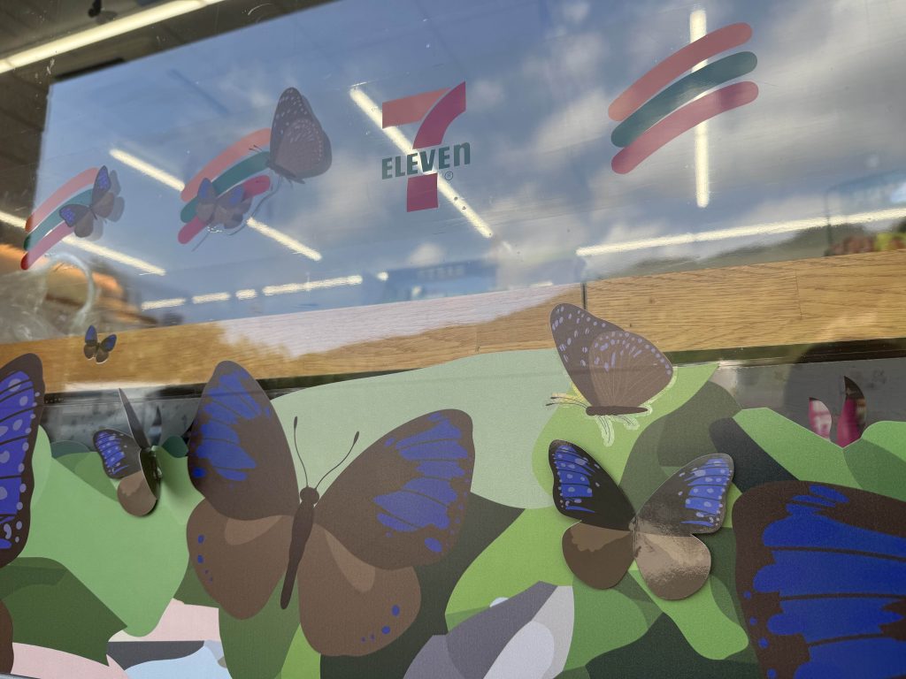 7-ELEVEN表示,響應茂管處的綠色旅遊的概念及發想下,透過雙方的合作與加盟主的重視,於茂林區入口處7-ELEVEN茂林門市,共同打造一座全新「紫斑蝶主題門市」,於門市內外規劃生態窗貼、蜜源植物栽種、生態布景,提供紫斑蝶自由休憩覓食、降低窗殺機率,為7-ELEVEN友善紫斑蝶2.0版全新做法,更期待帶給旅客一種親近在地自然美的感受。「我們希望每位走進門市的朋友,都能感受到茂林的自然美、族群文化,以及紫斑蝶背後的故事。這裡不只是補給站,也是旅人與山谷對話的小小起點。」