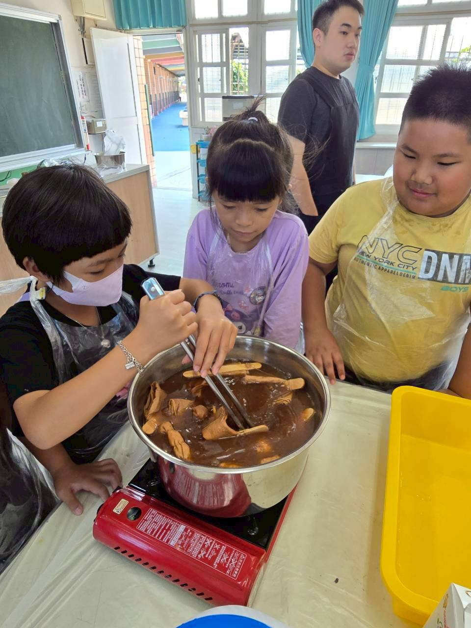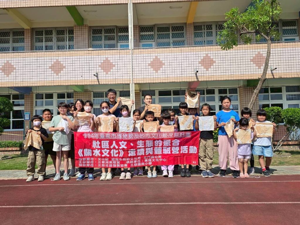 北門三慈國小校長郭詔維表示,學校推動在地文化與藝術教育,今年度配合「一一四年度南市博物館及地方文化館深耕計畫」,與三寮灣東隆宮攜手辦理「關水文化走讀與體驗營」,邀請講師張順治指導學生,使用北門特色農產紅蔥頭萃取染汁,開啟藝術創作。
