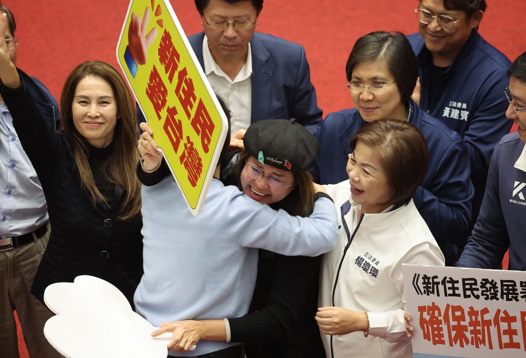 三讀通過後,民眾黨籍立委麥玉珍在議場內與國民黨籍立委開心相擁,麥玉珍表示,台灣有六十五萬新住民,四十萬新二代、八十五萬移工、十萬僑生,含家庭超過二百萬人的聲音,這不只是立院的一項決議,更是台灣民主非常重要的一天,為百萬新住民與新二代,建立起屬於他們的完整制度。
