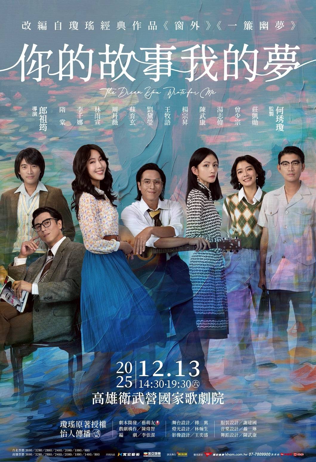 華文重量級作家瓊瑤的經典作品,影響台灣影視與文學超過半世紀,如今正式授權改編為舞台劇。全新作品《你的故事我的夢》取材自《一簾幽夢》與《窗外》,12月13日於高雄衛武營國家歌劇院演出。