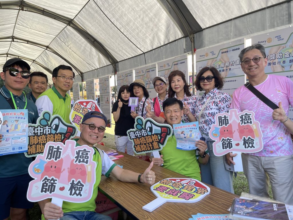 台中市政府衛生局二十二日響應國際扶輪三四六一地區扶輪日於台中市民廣場舉辦「遠離肺癌,擁抱健康」及宣導反毒反詐活動。結合園遊會、衛教闖關及互動體驗,吸引市民參與。