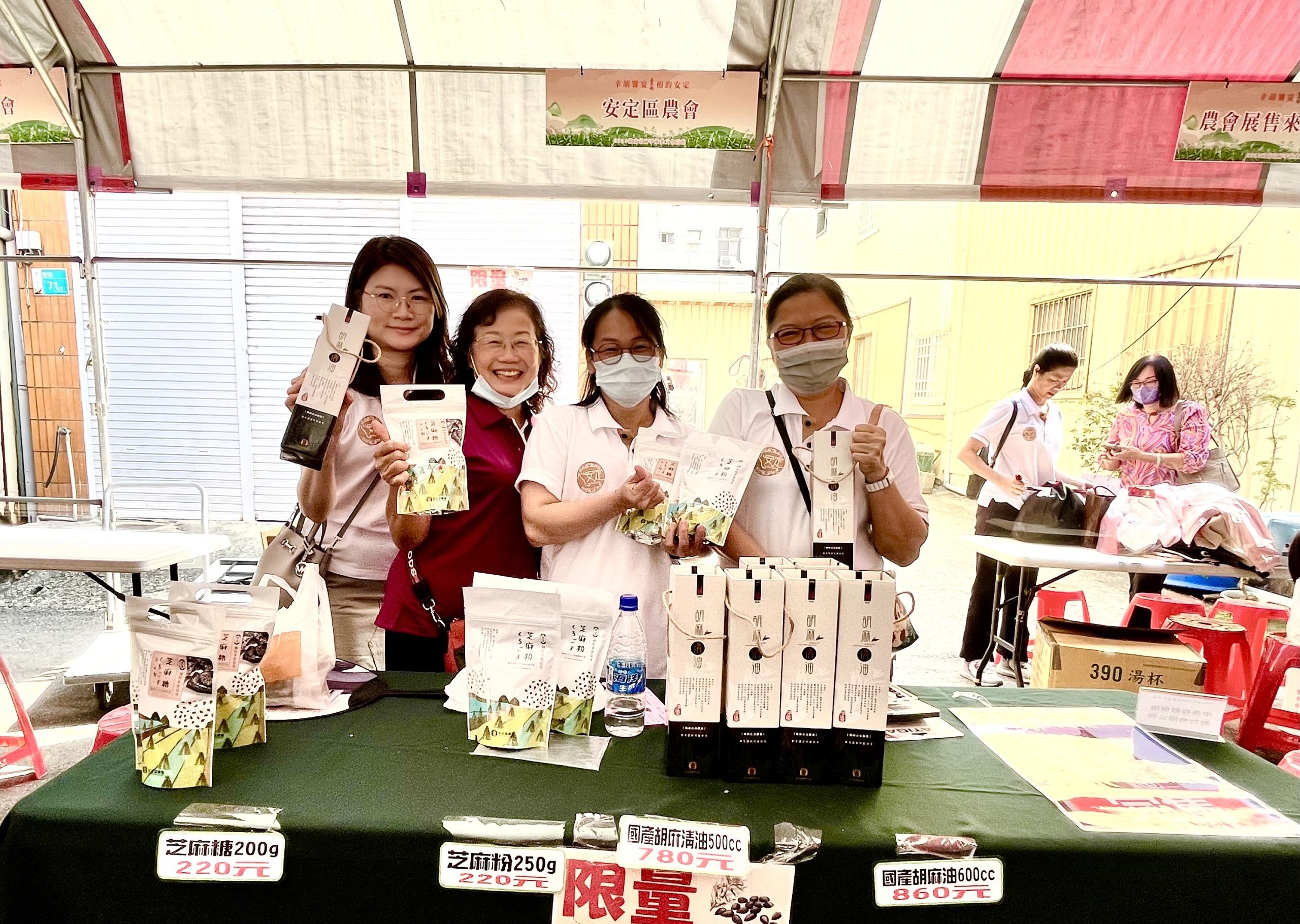 黃偉哲表示,台南胡麻以安定、西港、善化、佳里為大宗產區,土質適合種植胡麻,過程除了採收,還要日曬、拍打,再經過篩選,其胡麻含水量低、油脂量高,壓製出之胡麻油更是冬令進補首選。胡麻不僅是台南的重要農產,更象徵勤奮與幸福的滋味,其所製成的農特產品質優良且多元,極具經濟價值,誠摯邀請大家多加支持、踴躍購買。
