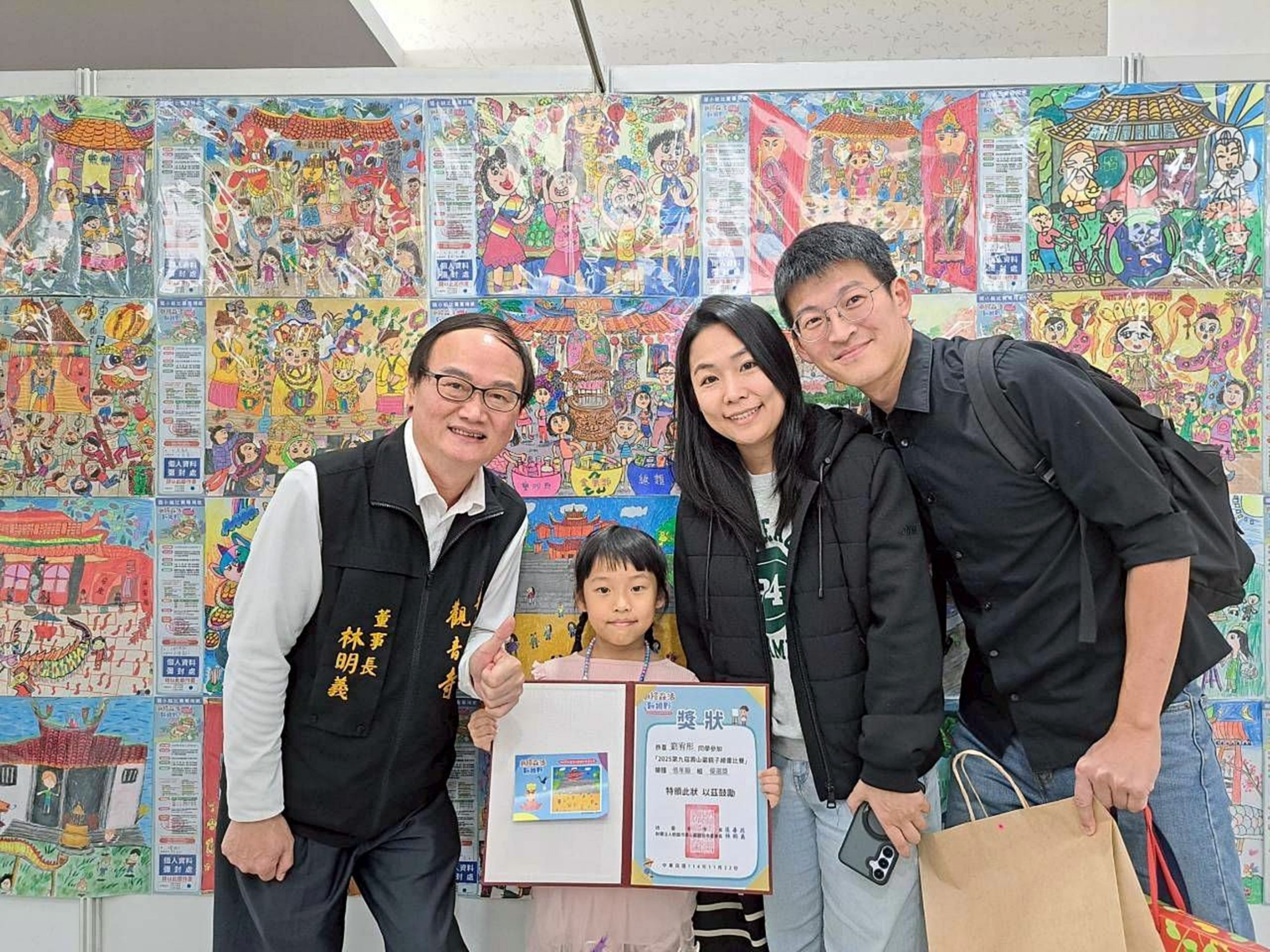 壽山巖親子繪畫比賽頒獎,金牌連霸人數創紀錄,壽山巖董長林明義和木朋友們合影。(記者陳華興攝)