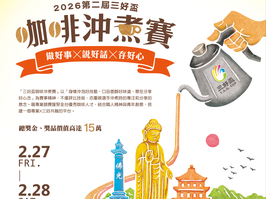 佛光山法寶堂也將於明年二月廿七日至三月一日,也即農曆大年十一至十三日新春期間,在法寶堂舉行「三好盃咖啡沖煮賽暨佛光好事集」公益活動,協助將高屏地區優質咖啡推向全世界,於是利用這二天提前在高雄咖啡節設攤小試身手,活動內容精彩;「二0二六第二屆三好盃咖啡沖煮賽暨佛光好事集」公益活動,下個月正式受理比賽報名。比賽分社會組、學生組,相關訊息會在官網上公佈。
