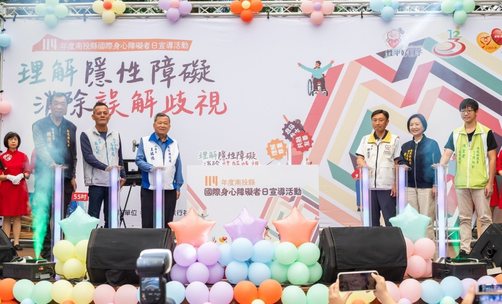 響應十二月三日「國際身心障礙者日」,南投縣政府二十三日在魚池鄉九族文化村舉辦國際身心障礙者日活動,以「理解隱性障礙,消除誤解歧視」為主題;副縣長王瑞德代表縣長許淑華到場與大家同歡,並抽出電視機大獎,為活動炒熱氣氛。