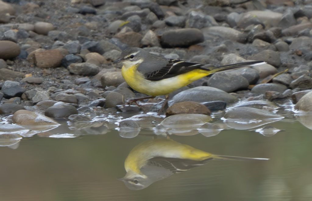 秋冬之際冬候鳥來報到,新北市大漢溪沿岸濕地各式雁鴨、鷸科等鳥類紛紛飛抵渡冬,包括冬季限定的灰鶺鴒(如圖)。(新北高灘處提供)