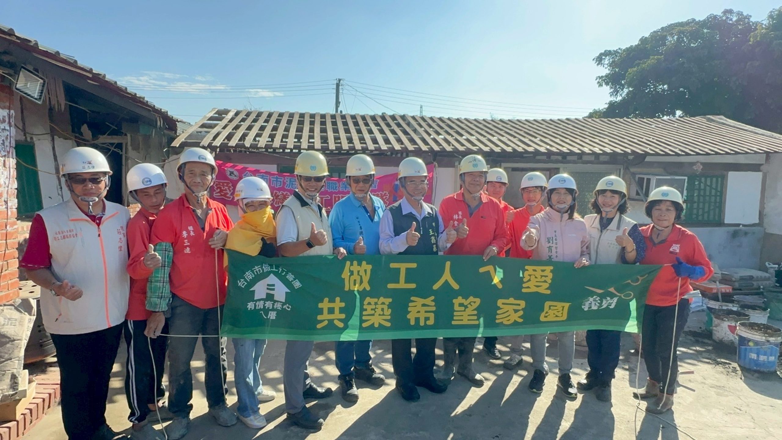 勞工局結合做工行善團志工,二十三日兵分三路前往鹽水、安南區和七股區為弱勢家庭房屋修繕;獨居鹽水區魏姓案主,以割稻、割草維生,每月以中低收入老人生活津貼維持基本開銷,住家因颱風侵襲嚴重受損無力自行修繕,勞工局接獲通報後由泥水志工進場進行屋頂與屋瓦拆除及清運作業,牆面補強與基礎修繕,各工會志工也將接力修繕工作,為魏姓案主提供安全的居住環境。