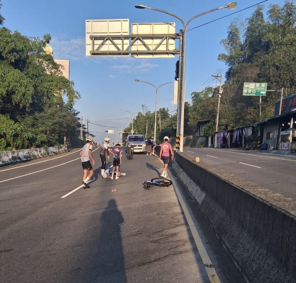 處理的新化警分局初步了解,黃姓騎士原本騎在外側車道,當時疑似不慎與同向的其他選手擦撞,人、車倒地於內側車道,後方俞姓民眾駕駛的自小客車疑似輾過騎士,釀成嚴重的交通事故。