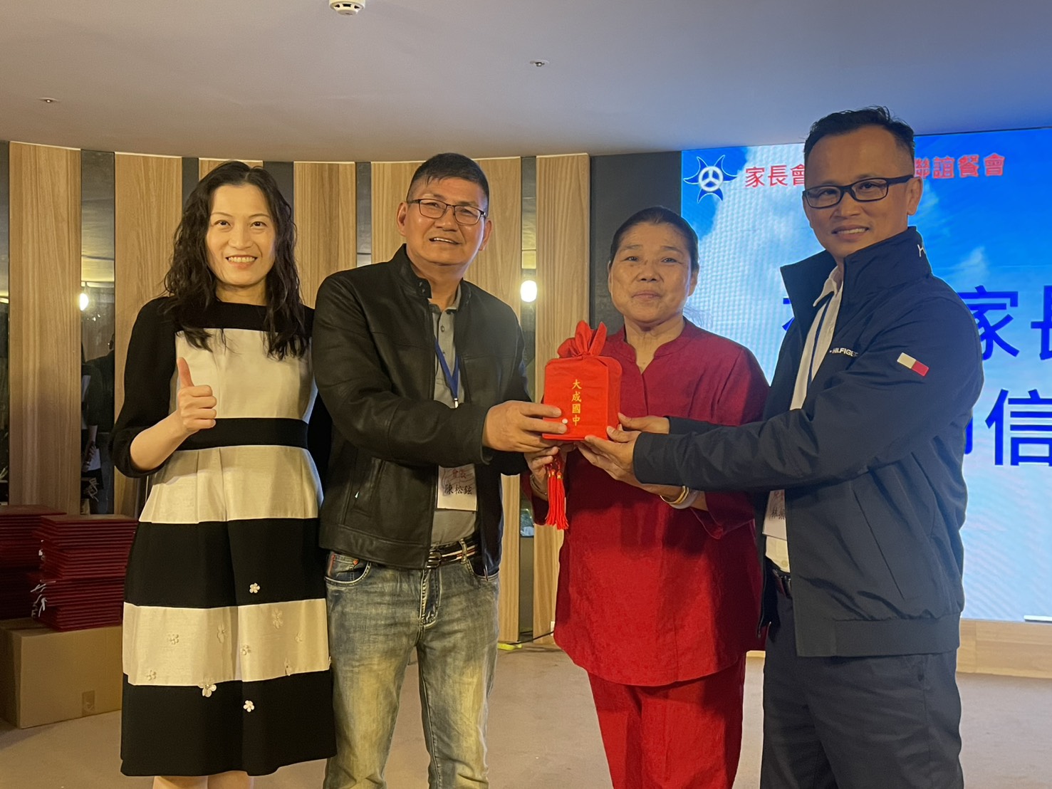 大成國中家長會新任會長陳松炫(左二) 交接印信,正式為校務發展努力。(圖/記者林怡孜攝)