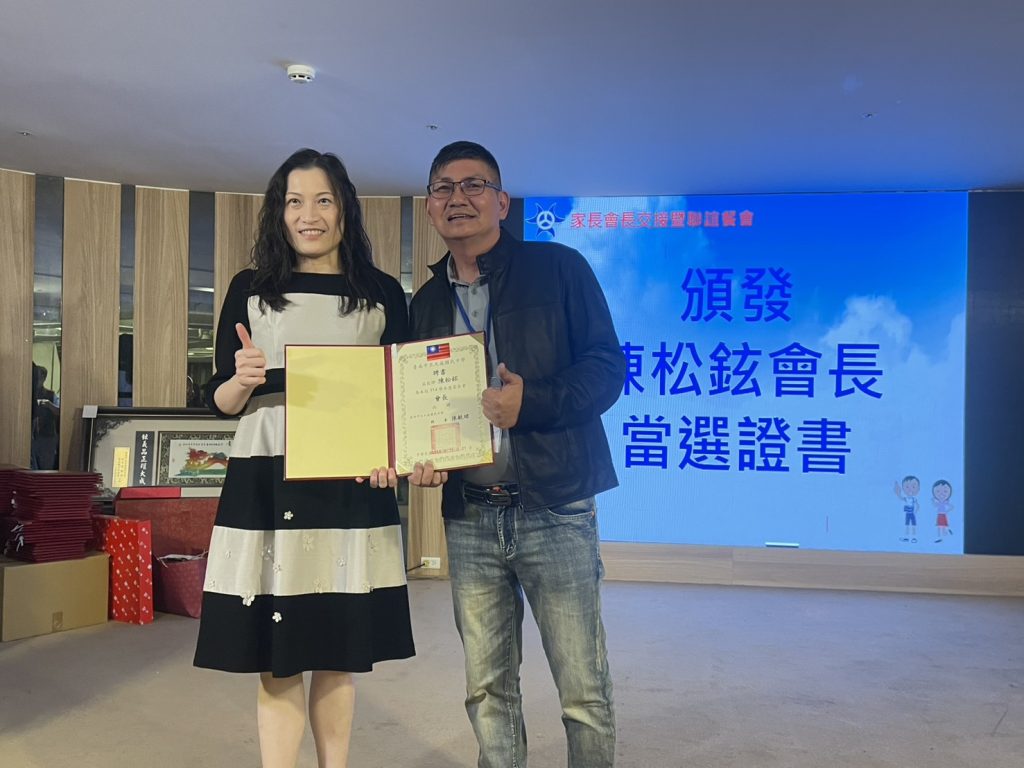 大成國中家長會新任會長陳松鉉(右)獲頒當選證書(圖/記者林怡孜攝)