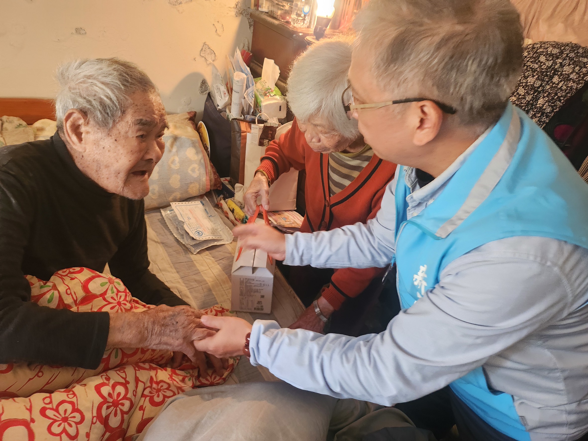 謝榮水副處長在訪視中貼心詢問長輩近期的健康與作息情形,提醒因溫度驟降,務必注意身體保暖、適時添衣,並避免清晨及深夜外出,以降低寒冷對身體造成的不適。他也特別強調,冬季用電需求增加,使用電暖器或加熱設備時應注意安全,避免因長時間用電而引發意外。同時,近期政府「普發現金一萬元」政策已陸續啟動,長輩更需提高警覺,不受不明來電、代辦話術所騙,以防遭受詐騙。
