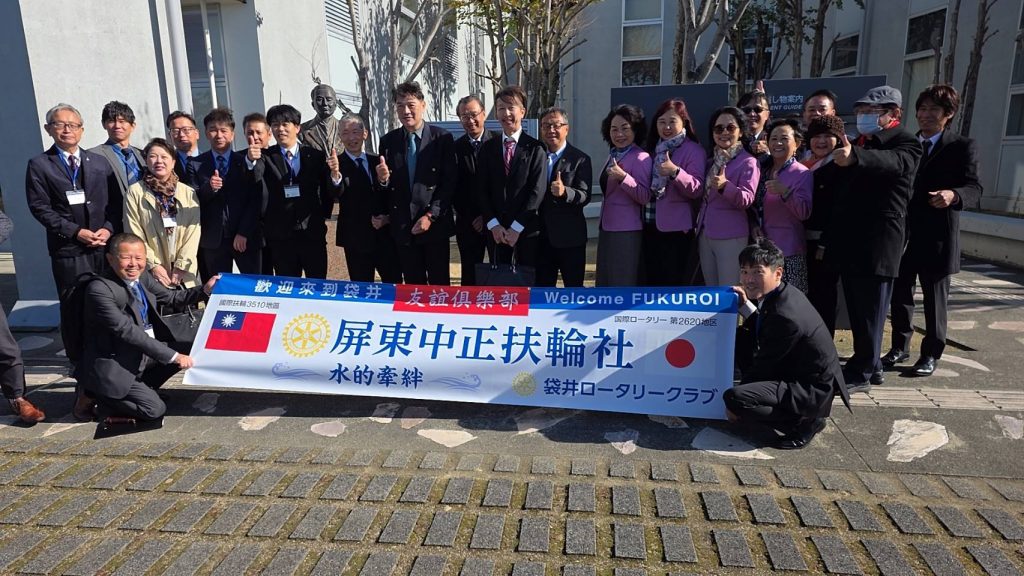 屏東中正扶輪社與日本靜岡袋井扶輪社,十一月十九日共同促成一場別具歷史意義的交流行程。屏東 20 位鄉親代表偕同發現「伏流水」並推動二峰圳、力里圳研究的屏科大名譽教授丁澈士,以及正在日本推動台日防災教育合作的成功大學政治系教授楊永年,拜訪袋井市大場規之市長,延續台日跨越百年的「水的牽絆」。