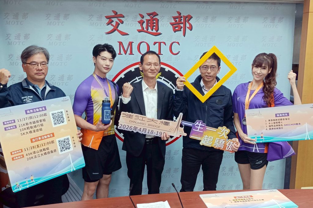 淡江大橋訂明年五月開放通車,公路局宣布,明年四月舉辦路跑及自行車活動,路跑限額七千人參加,自行車限額二千五百人,請民眾把握於十一月二十七日及二十八日上網報名。