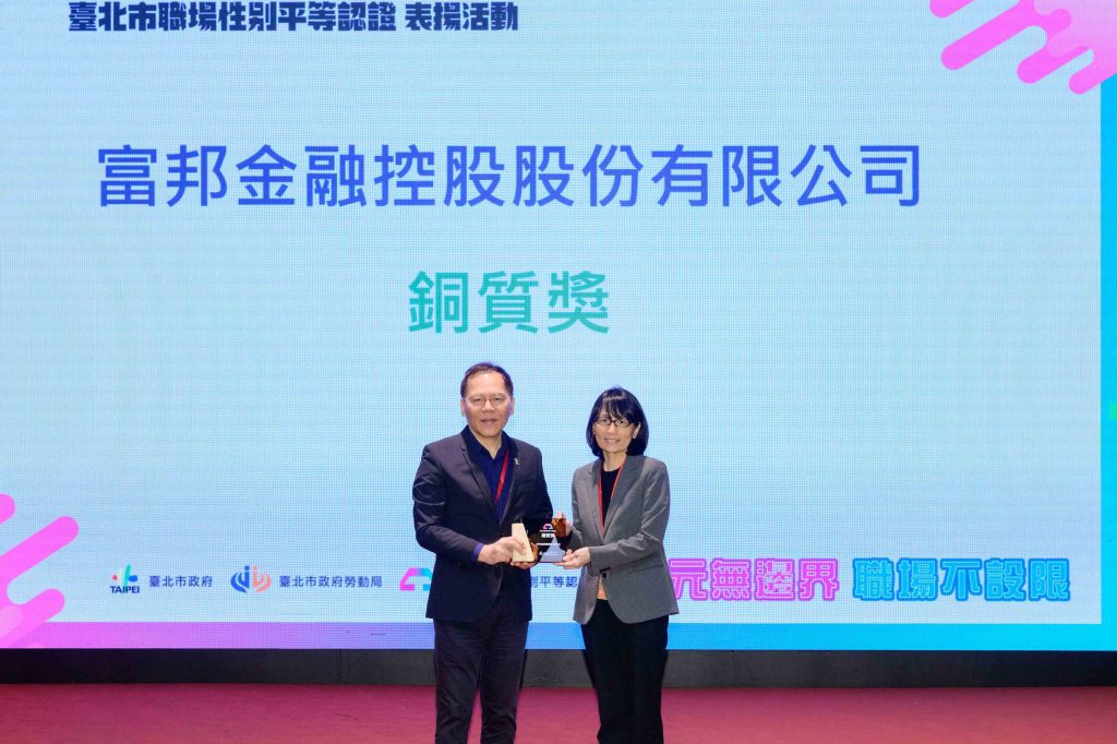 富邦金控致力推動性別平等與多元共融,今年再度獲頒臺北市政府勞動局「職場性別平等認證」,這已是富邦金控連續第三度獲得肯定,展現富邦金控持續打造友善、健康、平權的幸福職場之成果。