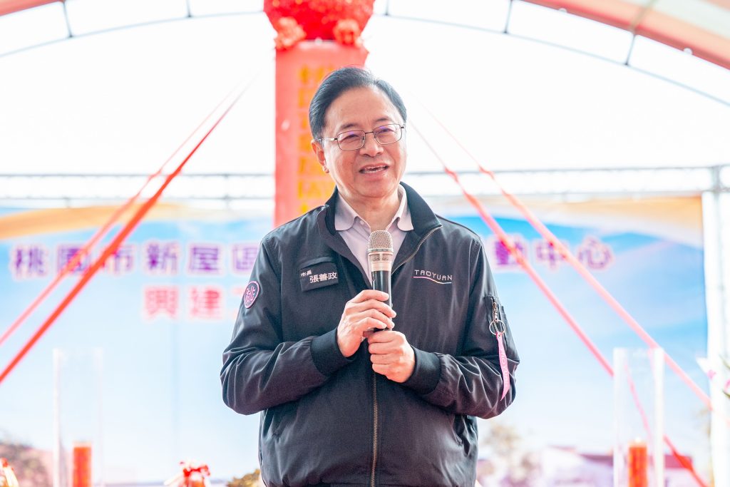 桃園市長張善政二十五日上午前往新屋區,出席「桃園市新屋區埔頂市民活動中心興建工程動土典禮」。張善政表示,埔頂市民活動中心是地方期盼已久的重要建設,此次工程投入三千萬元,由新屋區公所編列並負責施工,規劃單層挑高建築,室內面積約一千三百九十九平方公尺,打造兼具室內外功能的友善休憩場域,市府期盼工程如期完工,為市民提供更舒適、完善的全齡活動空間。