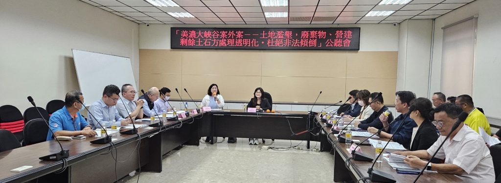 高雄市議會廿五日舉辦「美濃大峽谷案外案 ─ ─ 土地濫墾,廢棄物、營建剩餘土石方處理透明化?杜絕非法傾倒」公聽會,由陳美雅議員主持,陳麗珍議員列席。陳美雅在會中強調強化科技監測與衛星預警,稽查速度、頻率、人力要強化,對於濫砍濫倒的高風險區域要加強列管。