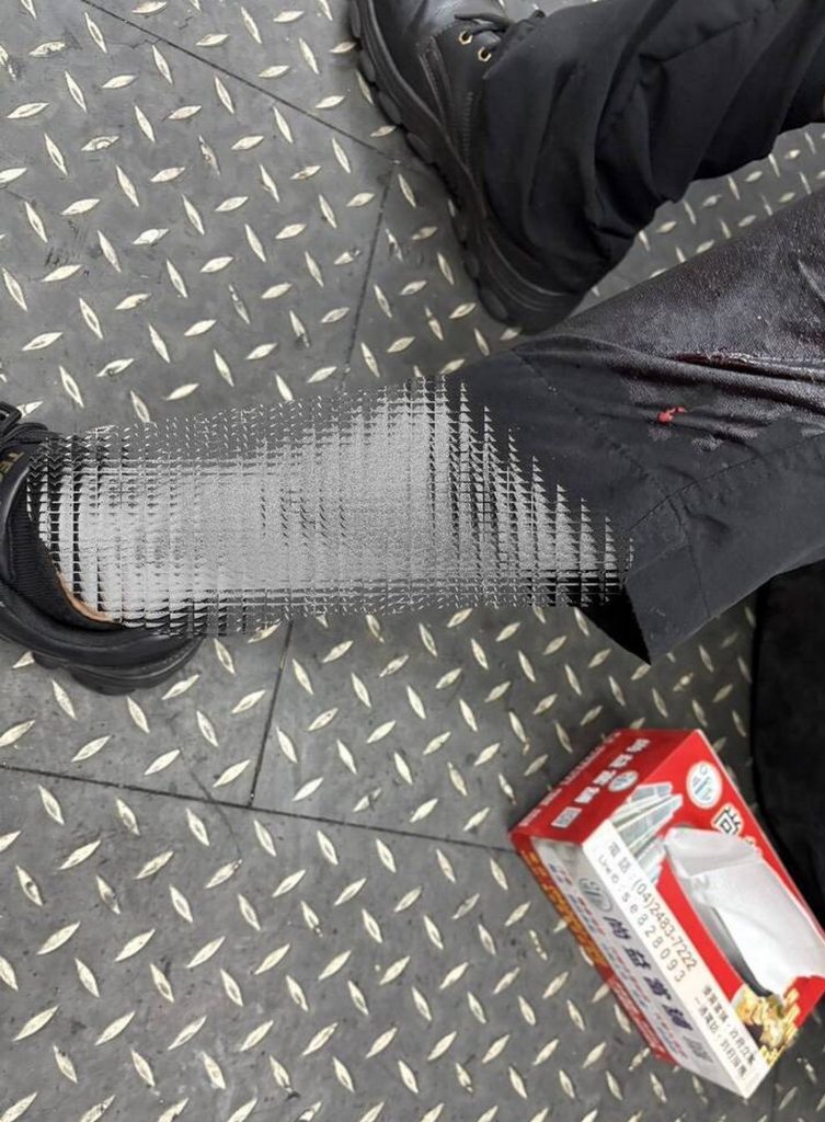 江男左小腿被黃女拿美工刀砍傷。(記者陳金龍翻攝)