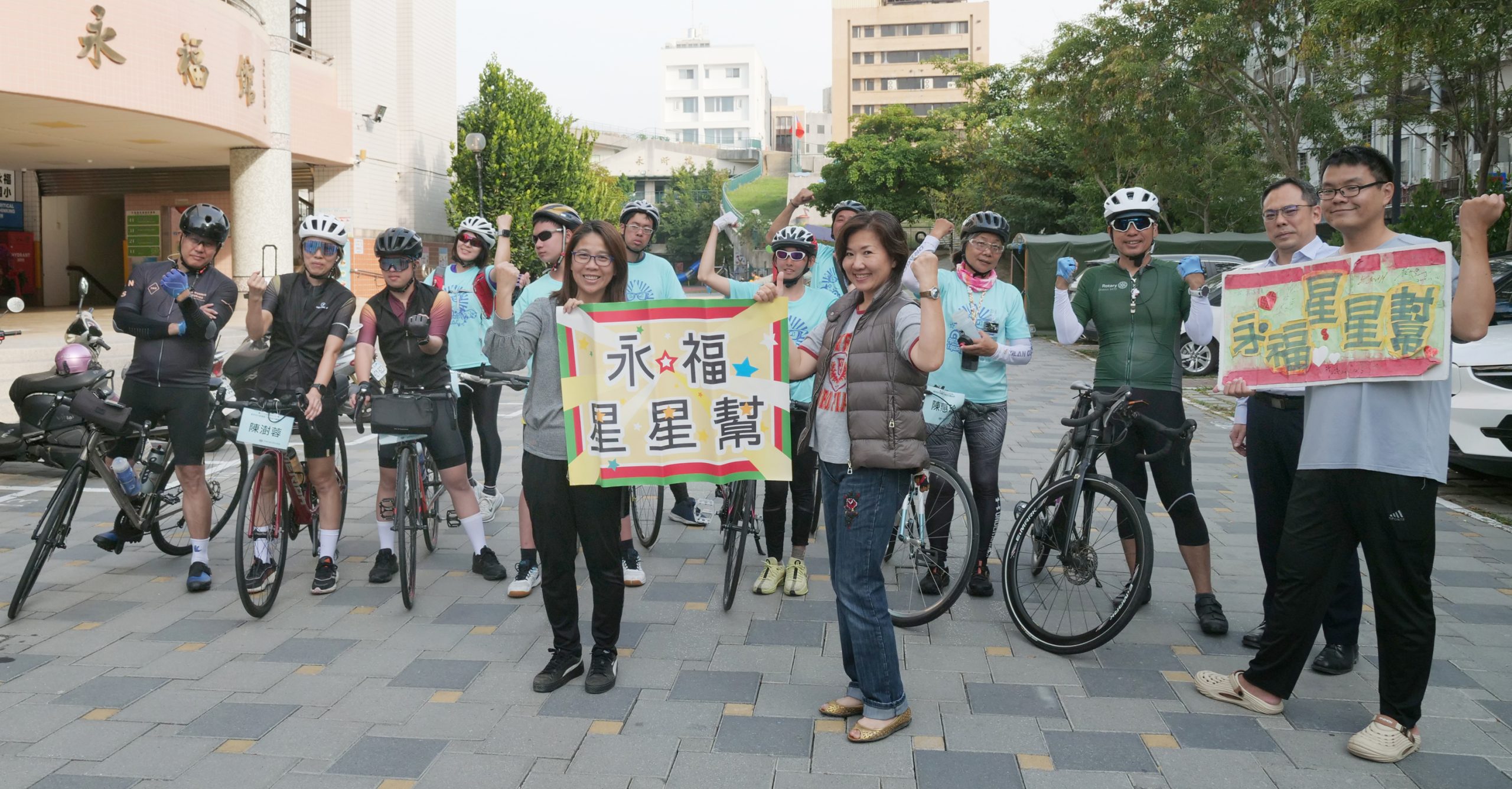 永福星星幫為「同星協力轉動愛」環島單車隊加油打氣。(永福星星幫提供)