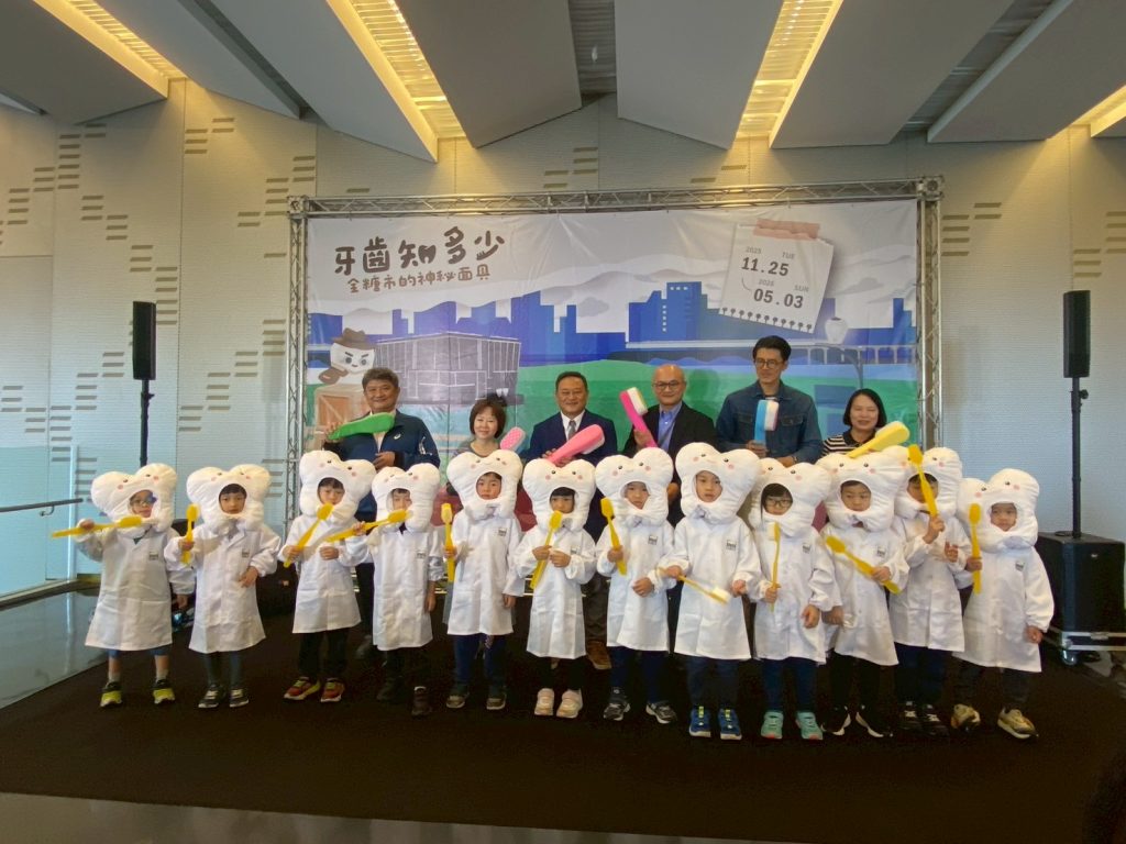 廿五日的特展「牙齒知多少」,在幼兒們戴著牙齒頭套和拿著牙刷道具演唱「刷牙歌」歌聲中揭幕,國立台灣史前文化博物館館長蔡政良說牙齒不好好保護,到了他的年紀只能靠假牙了。