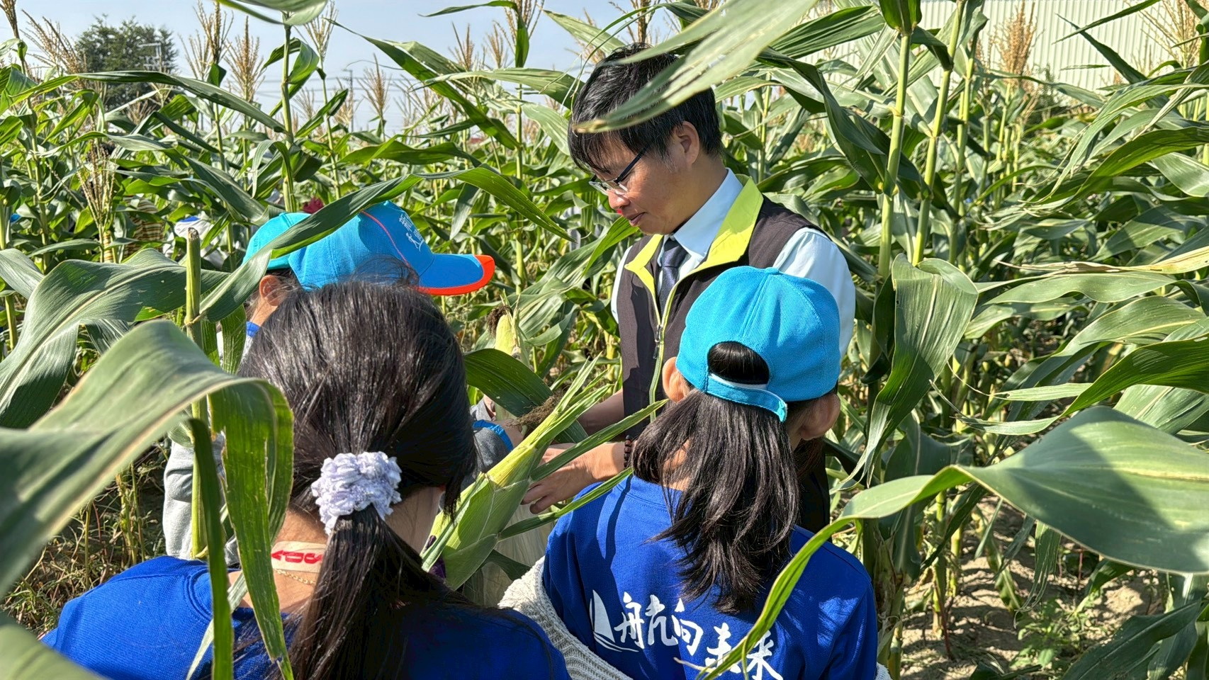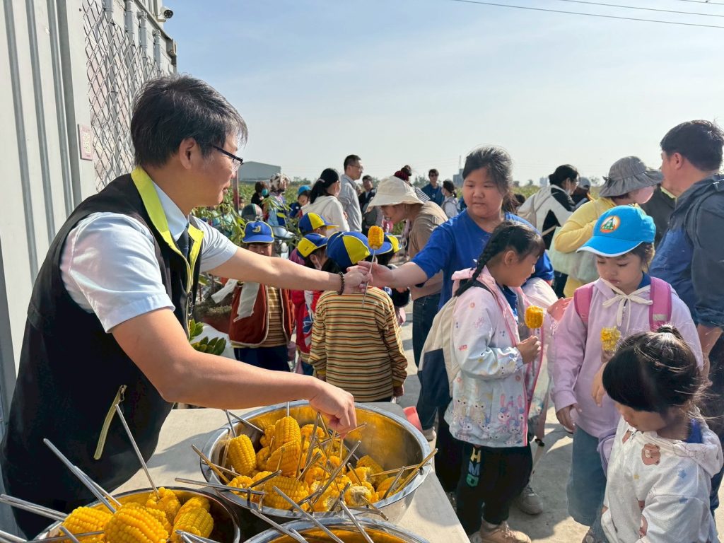 林建男指出,北門區位處台南沿海,多數的居民從事養殖為主,為讓學童了解食農的重要性,特別與台南市家長會聯合會理事長賴建良的昕昕農場合作,提供友善耕種,全程不使用農藥,維護生態平衡與土地健康的玉米田,讓學童體驗採收。