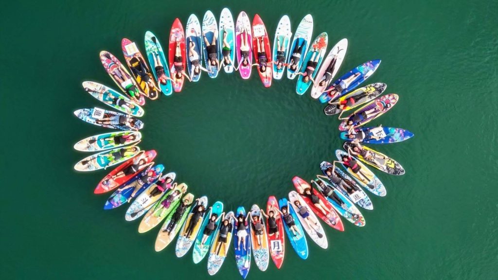 首先,SUP立槳迎曙光活動,邀請菁英們在湖面上划槳並肩前行排出「太陽花」隊型,這不僅是對體力與協調的挑戰,更象徵業務團隊齊心協力推動業績與人力,才能綻放全球人壽的光榮。