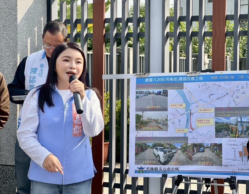 張嘉郡首站會同斗六市長林聖爵就「農雲六(河南街)農路改善工程」,深入瞭解後指出,該路段為當地重要通行道路,改善工程包含主線四五六公尺及支線一二四公尺瀝青混凝土路面重鋪,厚度達五公分,改善經費約九百萬元。此外,同步進行改善邊坡安全,讓居民更安心出入。
