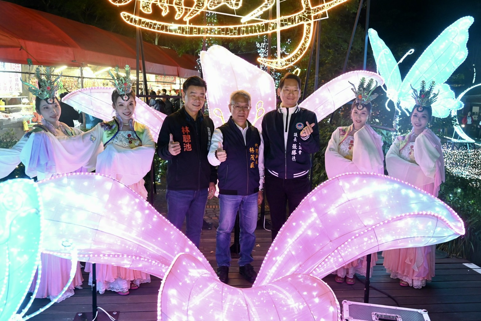 配合二0二五冬戀蘭陽溫泉季活動舉辦,主會場湯圍溝溫泉公園亦有光彩奪目的燈光裝置藝術布置,首先映入眼簾的是高達六公尺、寬九公尺的主燈,以「蘭陽風景」及「山形縣花笠舞」為主題;穿越閃耀的光廊,高三點八公尺、寬約三點三公尺的太平山杜鵑花,及翩翩起舞的大白斑蝶,邀您一同沉浸浪漫。順著河道漫步,色彩斑斕、高約三公尺的「國蘭隧道」綻放著縣花的優雅姿態,彷彿置身花團錦簇的夢幻仙境。展區的尾聲,寬一公尺以燈光為筆的「燈光藝術畫作」。