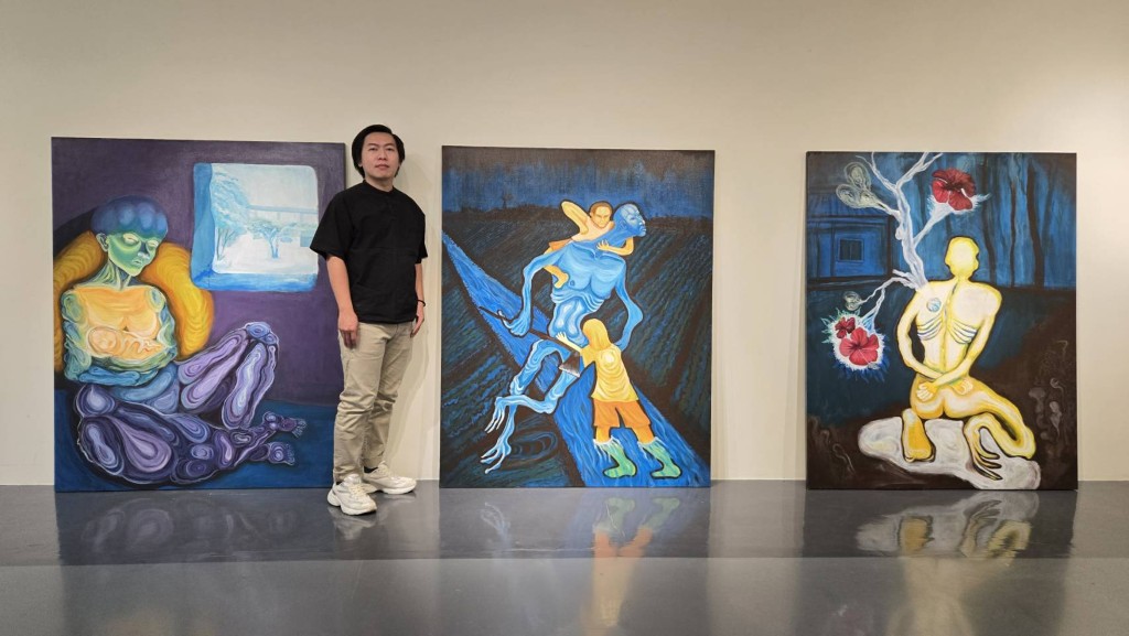 五位藝術家創作風格各異卻相互呼應;趙涵邦以幻獸寓言探問生死與情感連結,流露深刻人性溫度;黃暄軒以複合媒材描繪後工業文明與自然張力,呈現土地與文明記憶;曾靜芳以照相寫實記錄疫情親情與社會景象,以女性主義角度反思社會對女性空間的限制;顏珊怡以蒙太奇式圖像重構時間片段,使中斷與延續並存;沈宴緻透過繪畫自我對話,探索感知與意識深層力量。