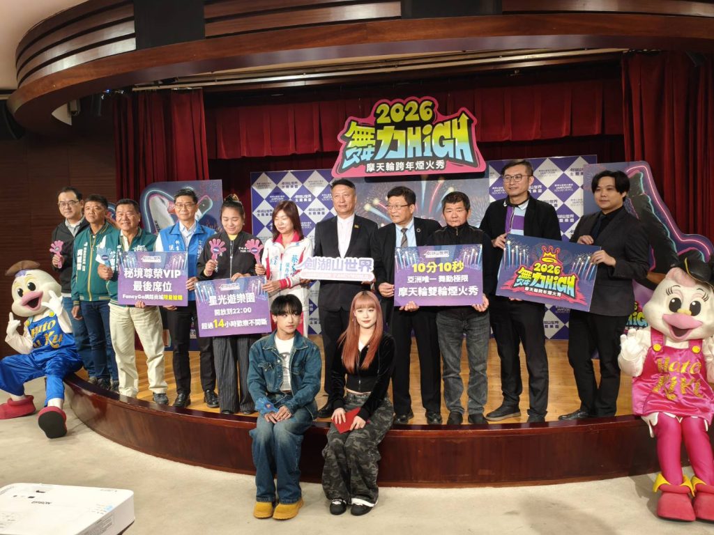 邁入第十九年的劍湖山世界跨年晚會,廿七日「二○二六舞力High摩天輪跨年晚會」宣傳會中,總經理曾慶欑說,今年主題「舞力最厲害,有你才夠High!」,推出亞洲唯一摩天輪跨年十分十秒煙火秀,並結合K-Pop排舞及逾二十組藝人輪番精彩演出,當天遊樂設施延長至晚間十點,邀全台民眾來劍湖山體驗震撼煙火。