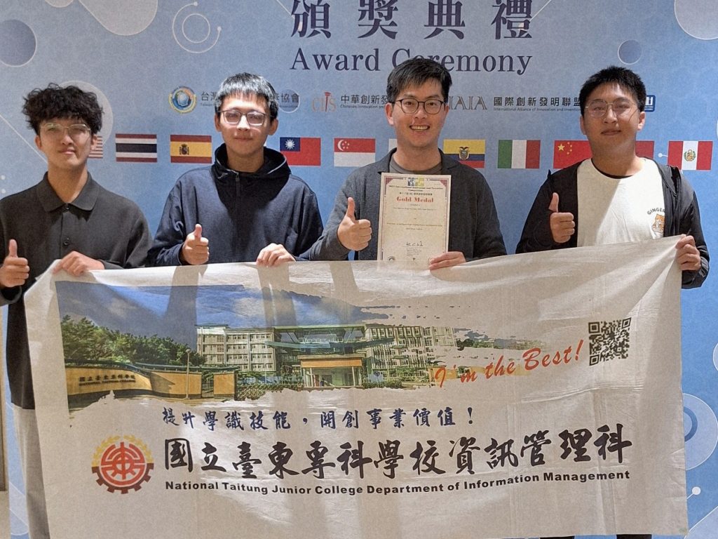 台東專科學校資訊管理科在2025 IIIC國際創新發明競賽中再創佳績。由資訊管理科主任林國豪帶領的學生團隊,以研發作品「幫寶識:一種基於嬰兒糞便影像辨識之大便色卡智慧健康預警系統與方法」,從包含美國、日本、義大利、俄羅斯、新加坡、西班牙等十二國、近四百件作品中拔得頭籌,勇奪國際金牌。
