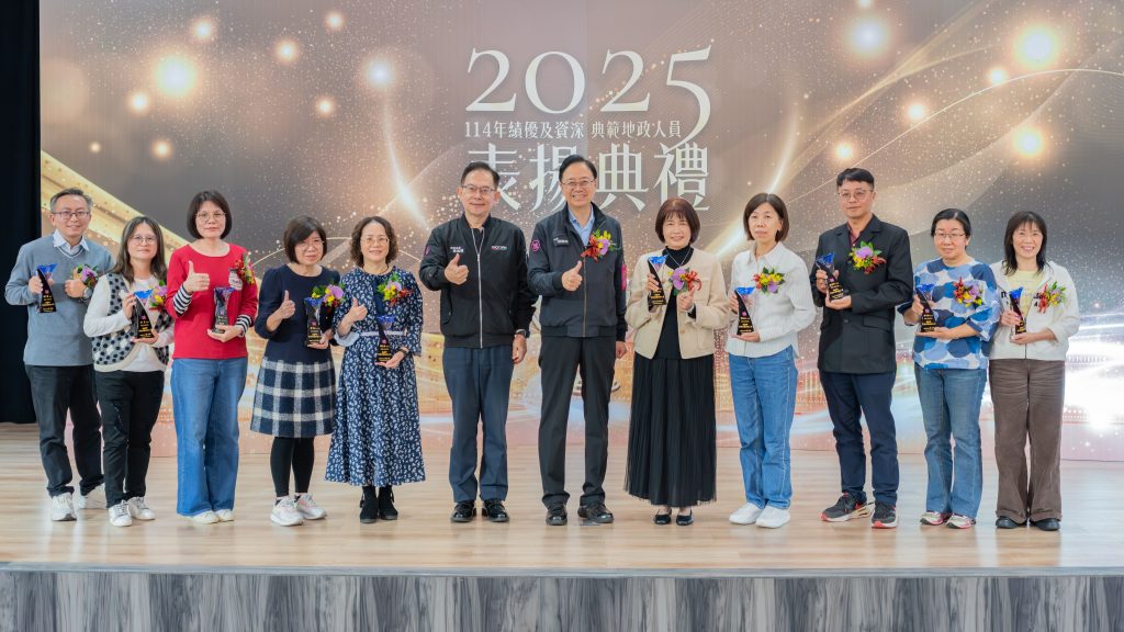 地政局表示,為肯定地政夥伴的專業投入及辛勞付出,本次公開表揚績優人員五名,其研究與創新措施對地政業務有具體貢獻;另有十名資深典範人員年資達多年,其中最長已超過37年。