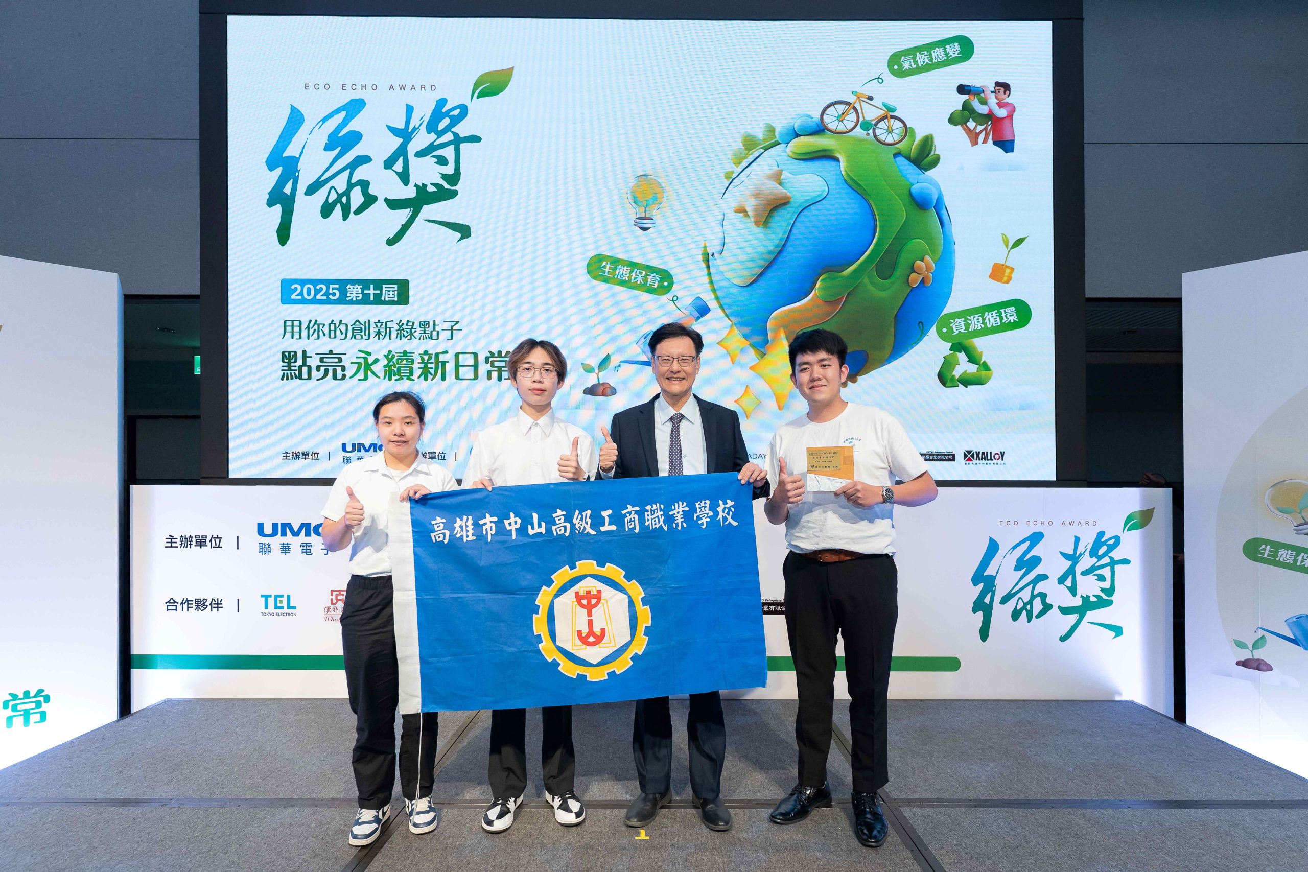聯電綠獎自二0一四年創辦以來,旨在鼓勵青年採取實際行動關懷地球環境議題,今年競賽主題聚焦「氣候應變」、「生態保育」與「資源循環」三大面向,中山工商大有斬獲,二十六日在新竹喜來登大飯店接受公開表揚,首獎獲五萬元獎金及獎座。