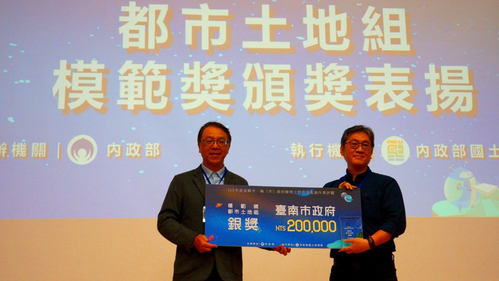 配合內政部國土管理署政策,推動土地利用監測及管理作業,落實國土計畫理念,台南市在中央評鑑中,獲得都市土地組模範獎銀獎,展現台南市在土地治理及空間管理方面的卓越成果。