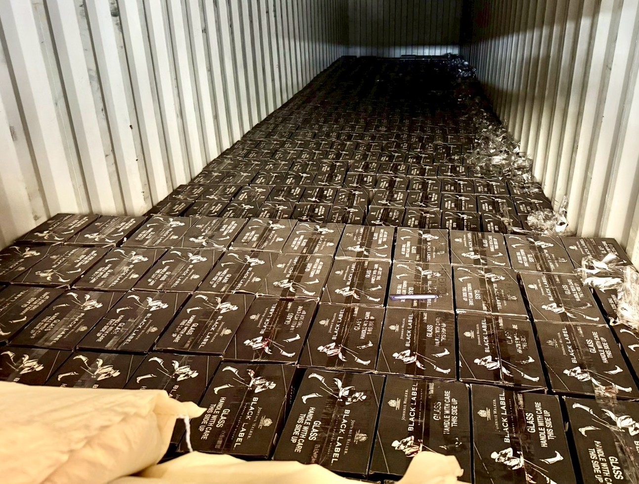 高雄關表示,日前在高雄港第S三號碼頭執行查緝工作時,關員發現兩個四十呎轉口貨櫃,櫃門前兩排堆置申報的塑膠粒等貨物作為掩飾,貨櫃內層都是未申報的約翰走路威士忌及野格利口酒,經連日清點,數量共三千三百廿八箱,多達三萬九千九百卅五瓶各式洋酒,估計市價逾新台幣二千六百萬元,經核與艙單及運送契約所載貨名不符,涉嫌違反海關緝私條例等規定,依法查扣。