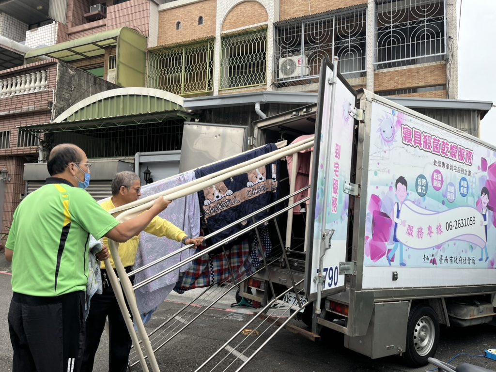 台南市灣港照顧關懷協會自一一四年四月起推動「到宅乾燥車服務」,專為弱勢長輩及自理能力不足的家庭提供棉被、衣物烘乾協助。今(廿八)日乾燥車開抵台南市東區,為在地低收入戶長者免費烘衣,讓弱勢家庭在濕冷天氣中也能穿上乾爽衣物。東區區長黃炳元與里長、社區理事長皆到場陪同,向協會志工表達感謝。