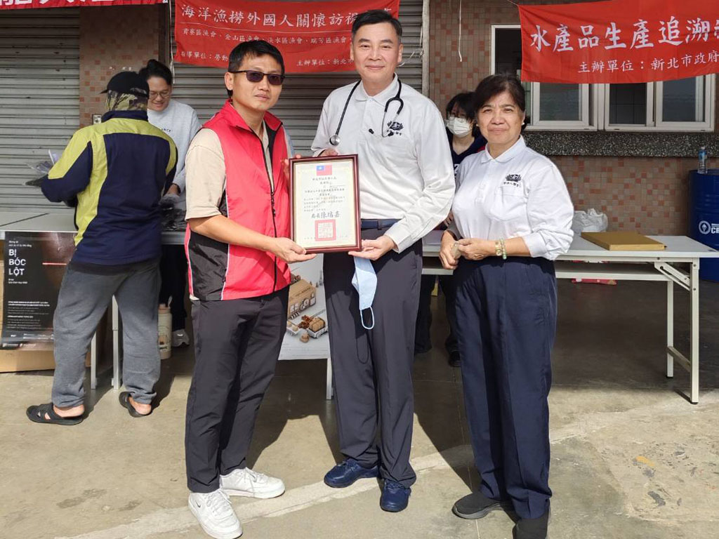 新北市勞工局長陳瑞嘉表示,自102年起,勞工局每年都會在春節前夕,派員至新北市五大漁會(金山、萬里、瑞芳、淡水、貢寮)駐點關懷。往年發放時寒冬已至,為讓漁工朋友能及早拿到全新採購的內刷絨發熱衣、保暖帽等物資,規劃安排提早發放。今年除了新北市女子美容商業同業公會及視障按摩小棧到場,為移工朋友進行義剪、按摩外,還特別邀請慈濟基金會醫師一同參與義診,讓漁工朋友感受到臺灣滿滿的熱情關懷。