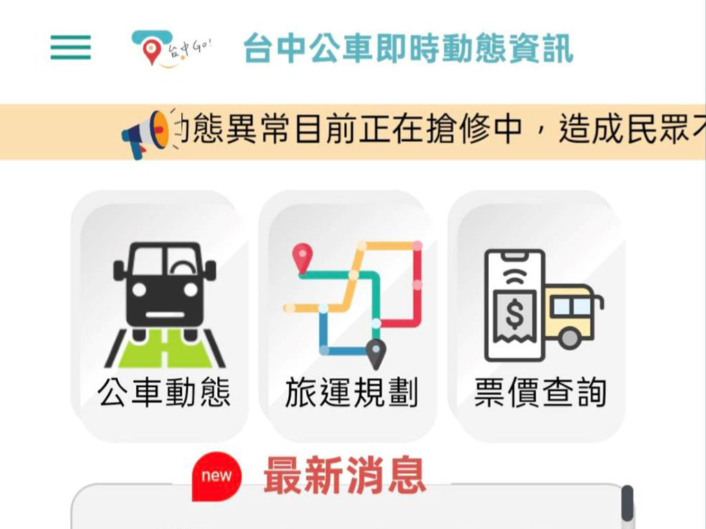 台中市公車動態系統28日上午出現大當機,導致智慧站牌、官方App及網頁全數無法顯示即時資訊。台中市議員周永鴻指出,系統自上午10點多起即出現異常,到晚間近七點仍未恢復,他要求交通局儘速修復系統,並檢討公車動態系統異常時的宣導及備援機制。