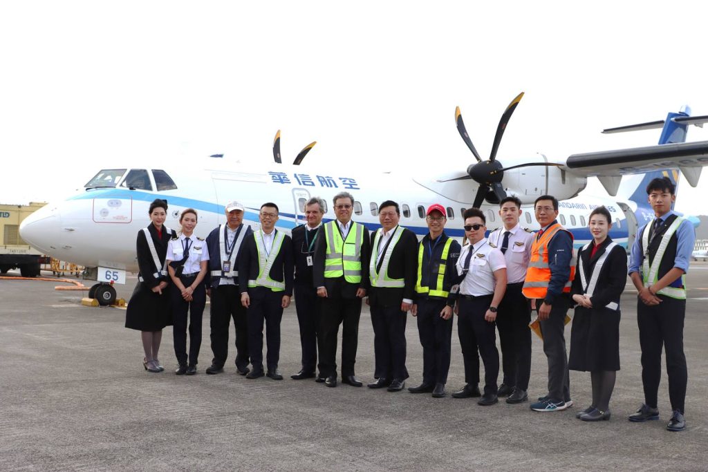 華信航空ATR新機28日飛抵松山機場 法國飛渡回台航程使用添加30%SAF燃油