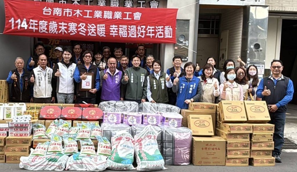 勞工局廿八日攜手木工工會兵分五路歲末送暖,前往安南區、中西區、永康、南區、東區、仁德、關廟、七股、將軍、安定、鹽水、麻豆、官田、善化、六甲、新營等十六個行政區致贈物資,總共有卅五個弱勢家庭受惠。