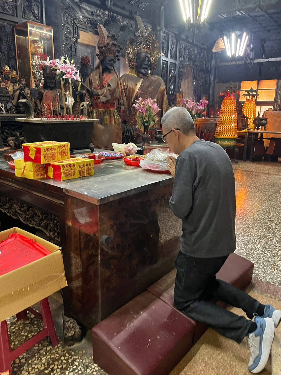 洪紹閔表示,新加坡華人世界的城隍爺就是網路上常看到的二伯公、三伯公,這位長者是城隍爺的忠實信徒,已來台灣十數天,一路從台北、新竹、台中、台南的城隍廟參拜。