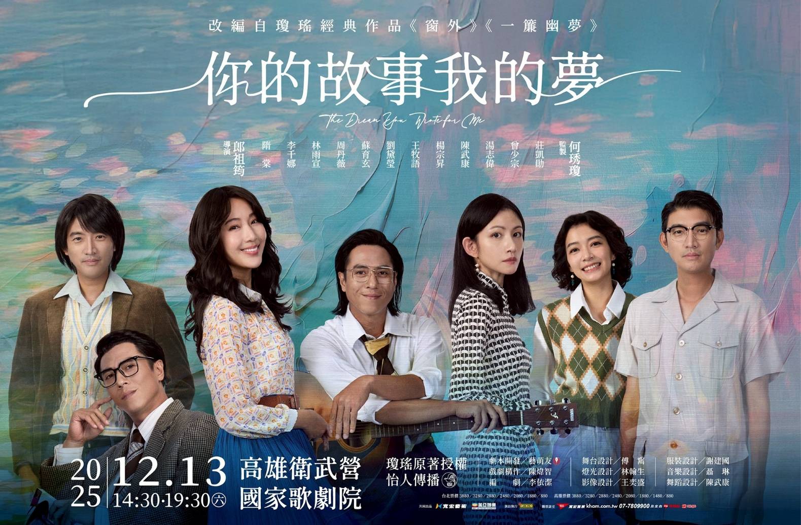改編自瓊瑤經典小說《一簾幽夢》與《窗外》的全新舞台劇《你的故事我的夢》,近日釋出精彩演出片段。該劇集結隋棠、林雨宣、周丹薇3位全新「瓊瑤女郎」,與莊凱勛、曾少宗、湯志偉等實力派演員同台飆戲,將於2025年12月13日於高雄衛武營國家歌劇院演出。