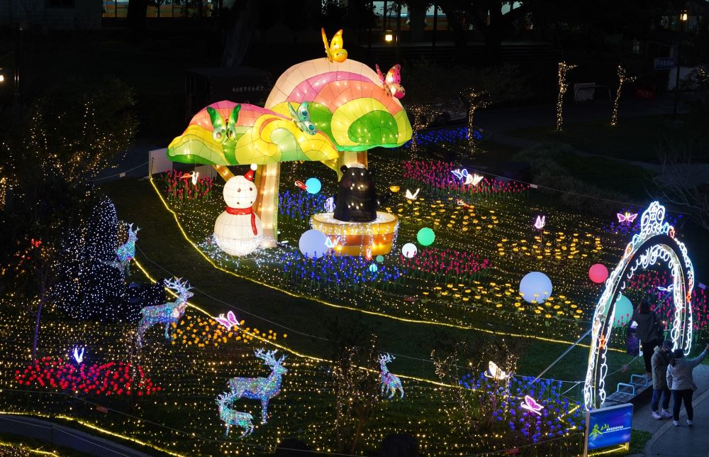 邁入第五屆的「2025山谷燈光節」29日晚間於谷關公園璀璨開幕,今年以「耶誕泡湯趣」為主題,喔熊組長化身泡湯造型燈萌翻全場,搭配雪人、麋鹿與鬱金香花燈妝點山城夜色,吸引大批民眾上山賞燈、泡湯、拍照打卡。