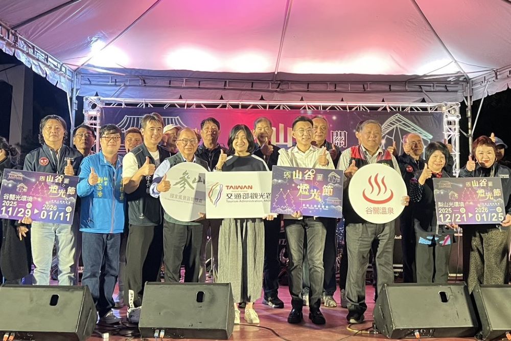 由交通部觀光署參山國家風景區管理處舉辦的「2025山谷燈光節」,由谷關燈區搶先開燈,立法院副院長江啟臣、交通部觀光署長陳玉秀、市議員古秀英和吳振嘉服務處代表、和平區公所區長吳萬福、和平區農會理事長楊淑青及谷關地區旅宿、溫泉業者共同出席,並有多位在地協會代表到場祝賀,象徵產官民一起為冬季觀光揭幕。點燈瞬間全場響起歡呼,主燈「泡湯喔熊」以療癒萌樣率先亮起,成為夜色中最受矚目的焦點,現場並由泰雅原舞工坊、流浪盒子、卡尼特與知名歌手陳華接力開唱,在冬夜山城中打造最暖心的山谷燈海。