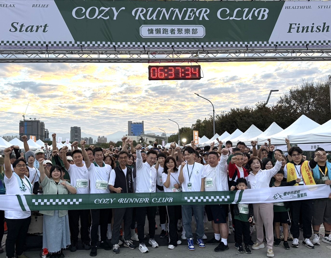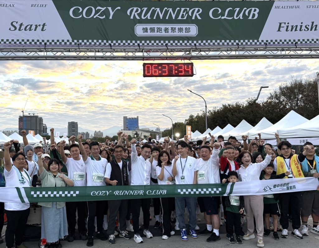 跑步也能很 Chill!由國聚建設主辦的「慵懶跑者聚樂部COZY RUNNER CLUB」30日清晨在中央球場登場,吸引逾5,500名跑者熱情參與。邁入第四屆的慵懶跑者賽事以療癒嘉年華氛圍打造輕鬆跑步體驗,今年更邀請Fubon Angels丹丹、安娜、沁沁、栗子擔任起跑嘉賓,均有意參選下屆台中市長的立法院江啟臣副院長及立委楊瓊瓔也一同為跑者鳴槍。
