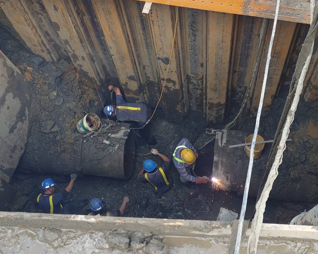 淡北道路11月27日進行主線高架橋P20基樁挖掘時,鑽破自來水管線,自來水公司11月28日起逐步減壓暫停供水,影響淡水區16個里、共計約6.2萬戶。市府第一時間獲報,立即啟動搶修工程,陸續完成設置鋼板樁支撐及擋土設施,原計今日凌晨搶修完成,因遭遇無法預期的地下水湧出,有坍方疑慮,考量安全緊急中斷暫停施工。