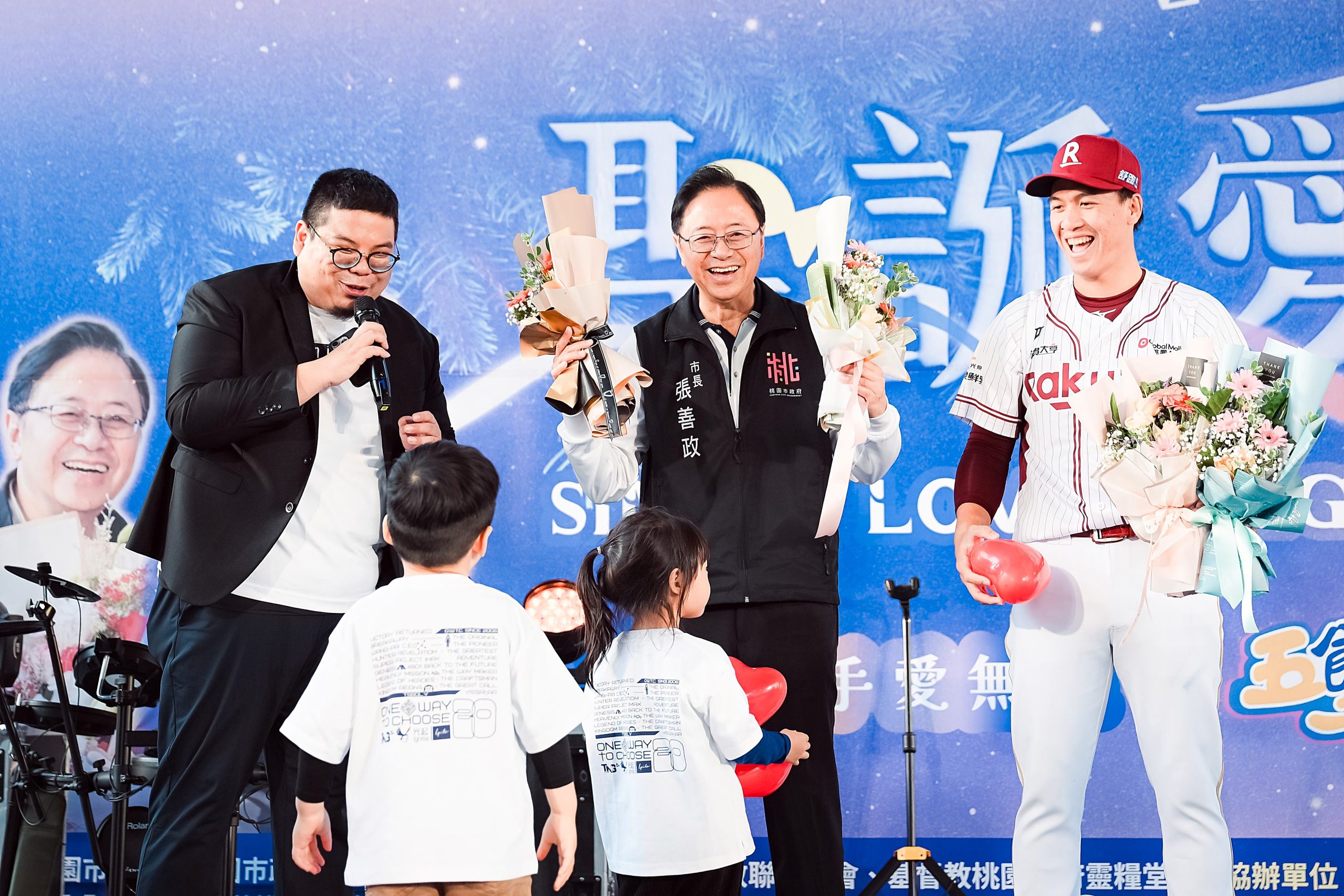 民政局指出,本次「聖誕愛傳頌」以「SING A LOVE SONG FOR CHRISTMAS」為主題,透過「寒冬送毯」公益募集,市民每捐款五百元,大會即代為捐贈一條毛毯給有需要的孩子;企業亦加碼提供「五餅二魚禮物盒」,將溫暖與盼望在聖誕節送進更多家庭。此外,樂天桃猿隊隊長林立再次擔任行動大使,捐出二十顆簽名球響應,並號召十號隊友共同為孩子付出心力。活動現場設有逾五十個攤位,包括義診、物資發放、市集與表演,以多元方式匯聚愛心,讓桃園在耶誕節慶中更添溫暖。