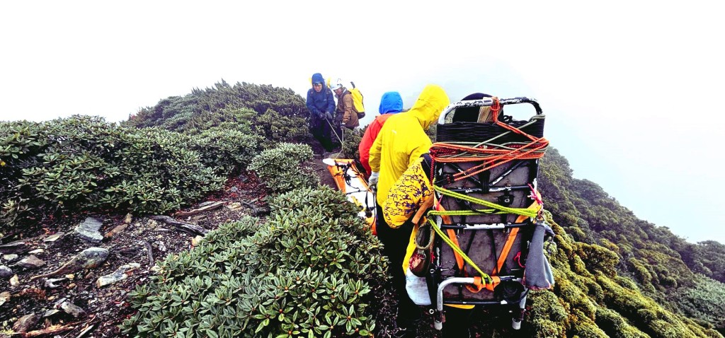 高雄市消防局第六救災救護大隊表示,因山區天氣狀況不佳,申請直升機運送下山的計劃可能無法成行,將進一步商請高山協作員揹負下山。